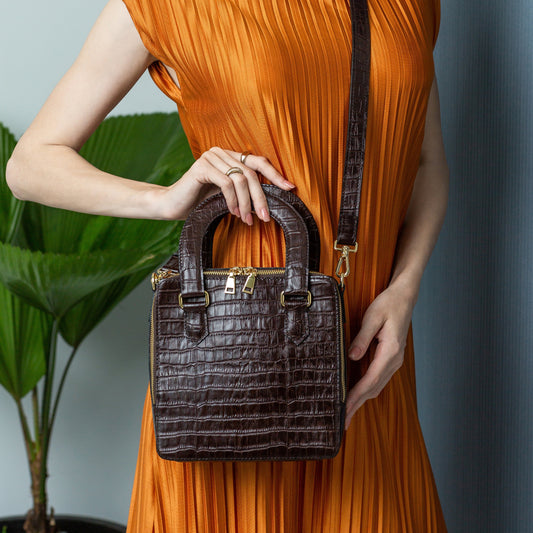 Sofia Shoulder Bag - Brown Saffiano Leather