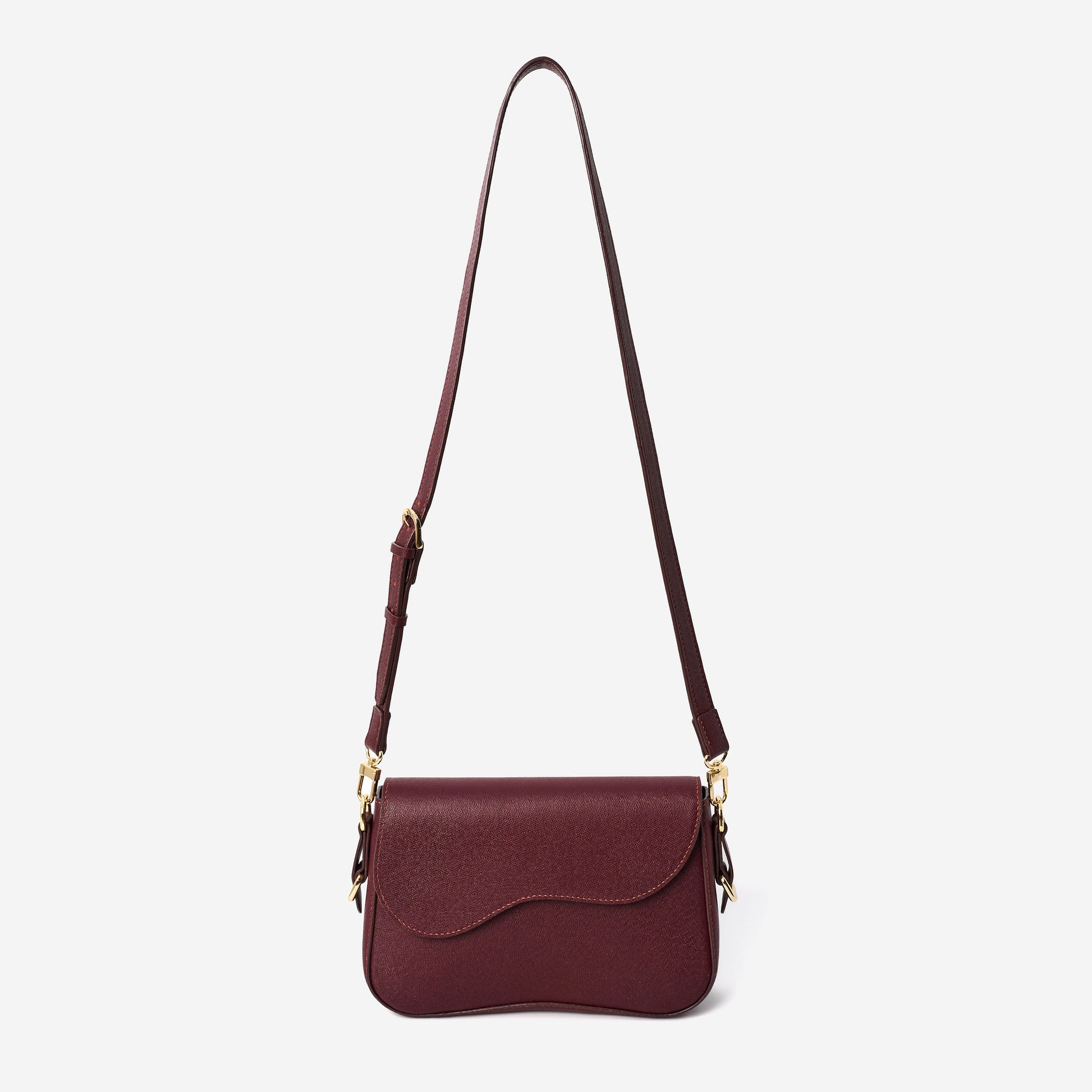 A refined blend of structure and softness, the Belle Curve Bag in Saffiano Red is where timeless elegance meets everyday ease. The unique curved flap adds a sculptural edge to its classic silhouette, while the rich saffiano-textured leather enhances durability and luxury.