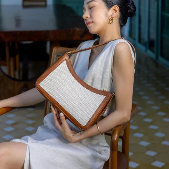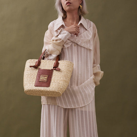 Natural Rattan & Leather Shoulder Bag - Summer May
