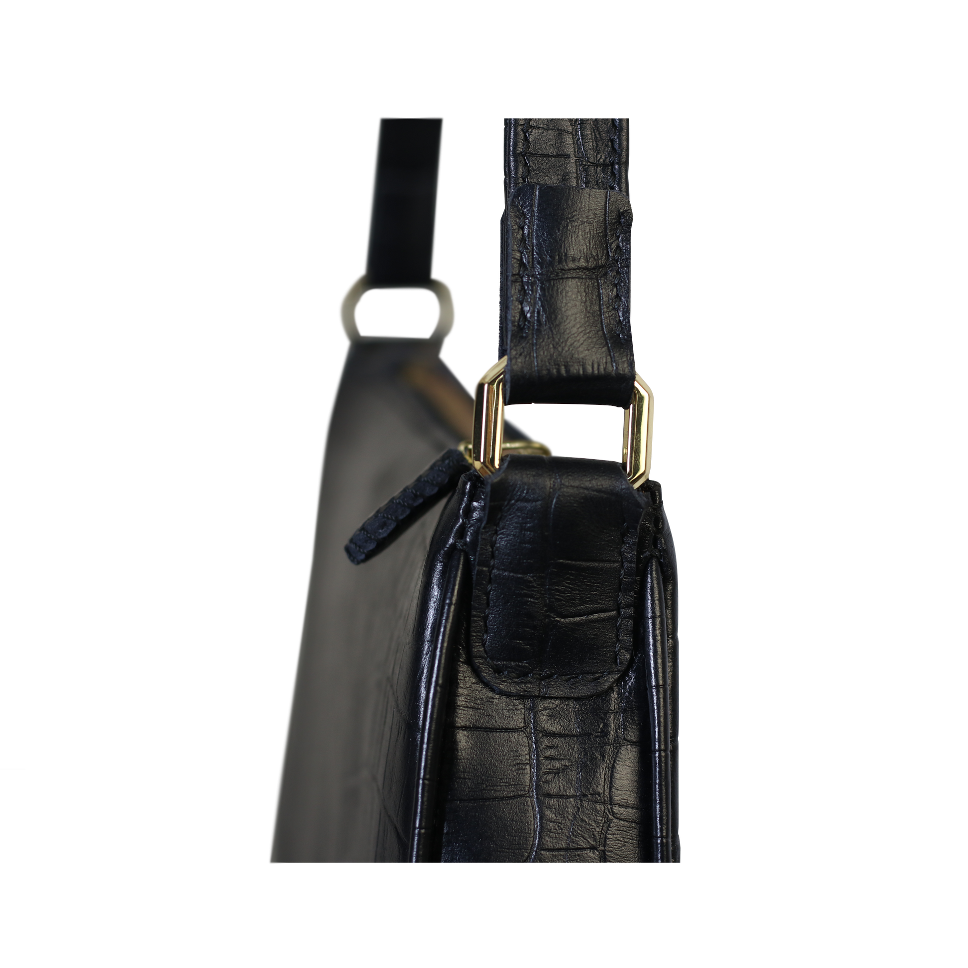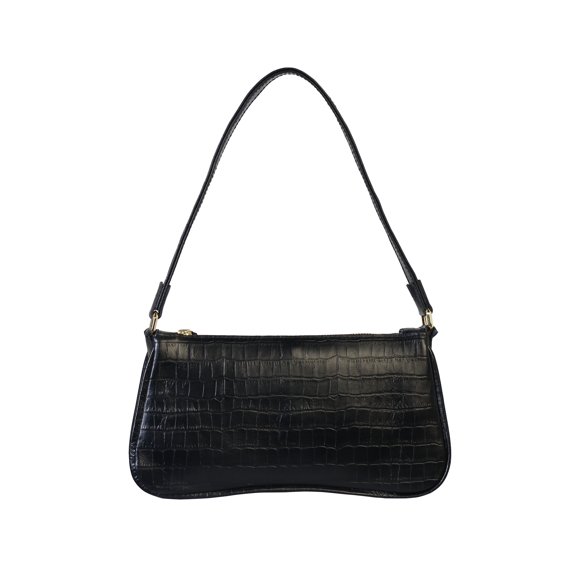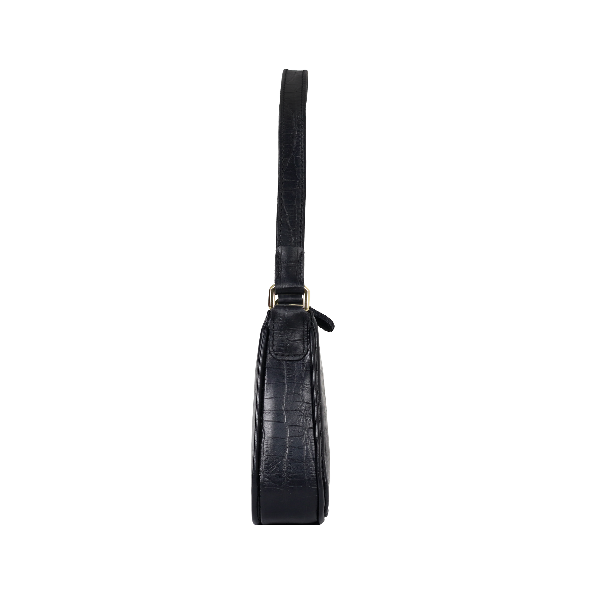Keep things simple and stylish with this Black Crocodile-embossed Baguette bag. This shoulder bag is a trendy piece that you definitely need in your closet for all seasons. Rendered in classic black so that it can be seamlessly paired with any outfit you have in mind. Medium size to conveniently store all of your daily essentials and keep you organized.
