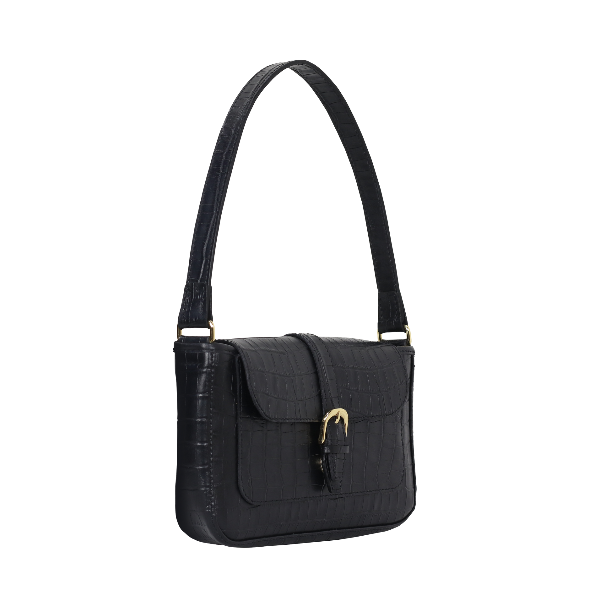 The Fancy shoulder bag in classic black with a crocodile-embossed design is as timeless as it is versatile in style. Medium size to hold all of your everyday necessities and keep you organized. Allow this versatile bag to follow you on a busy day with ease.