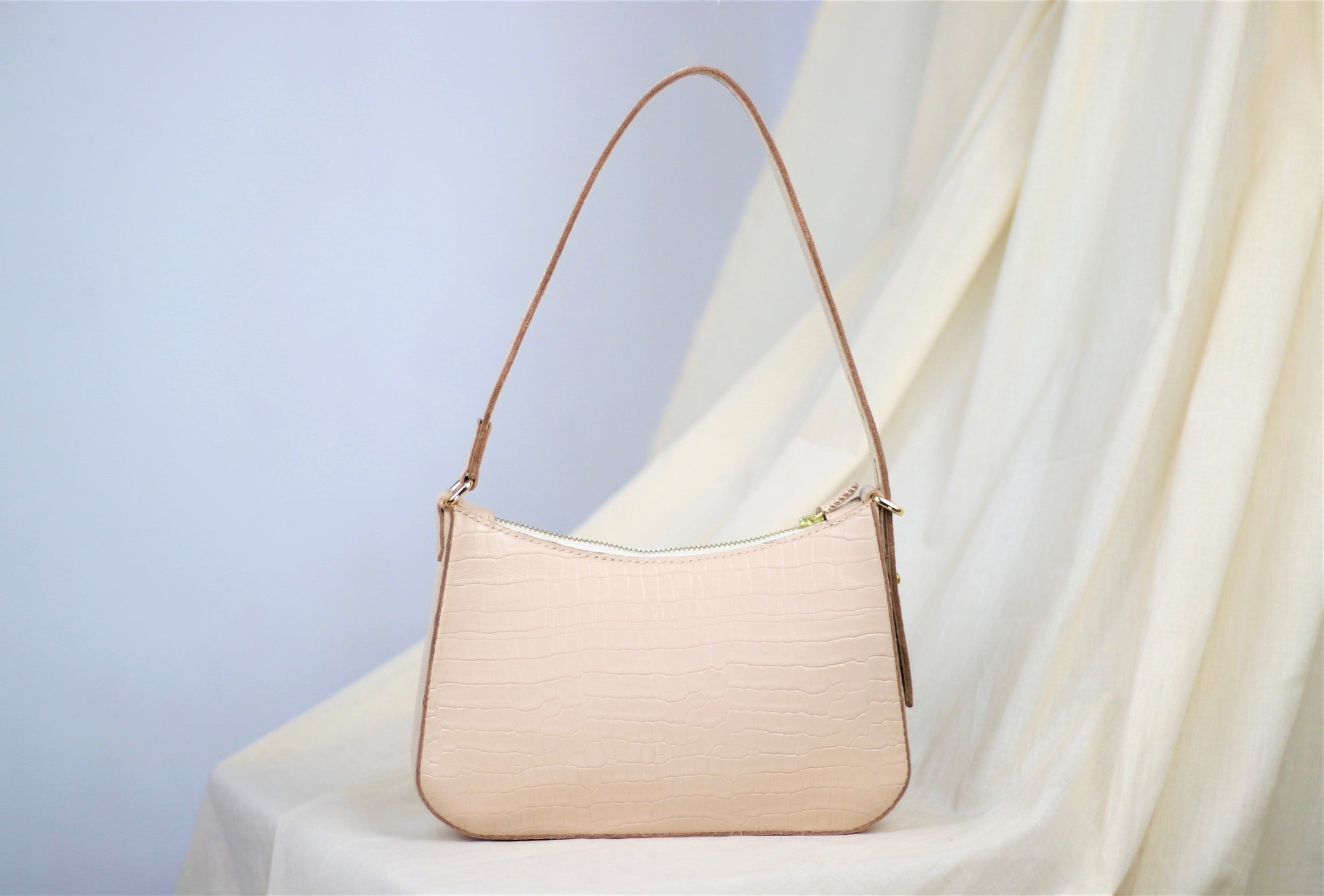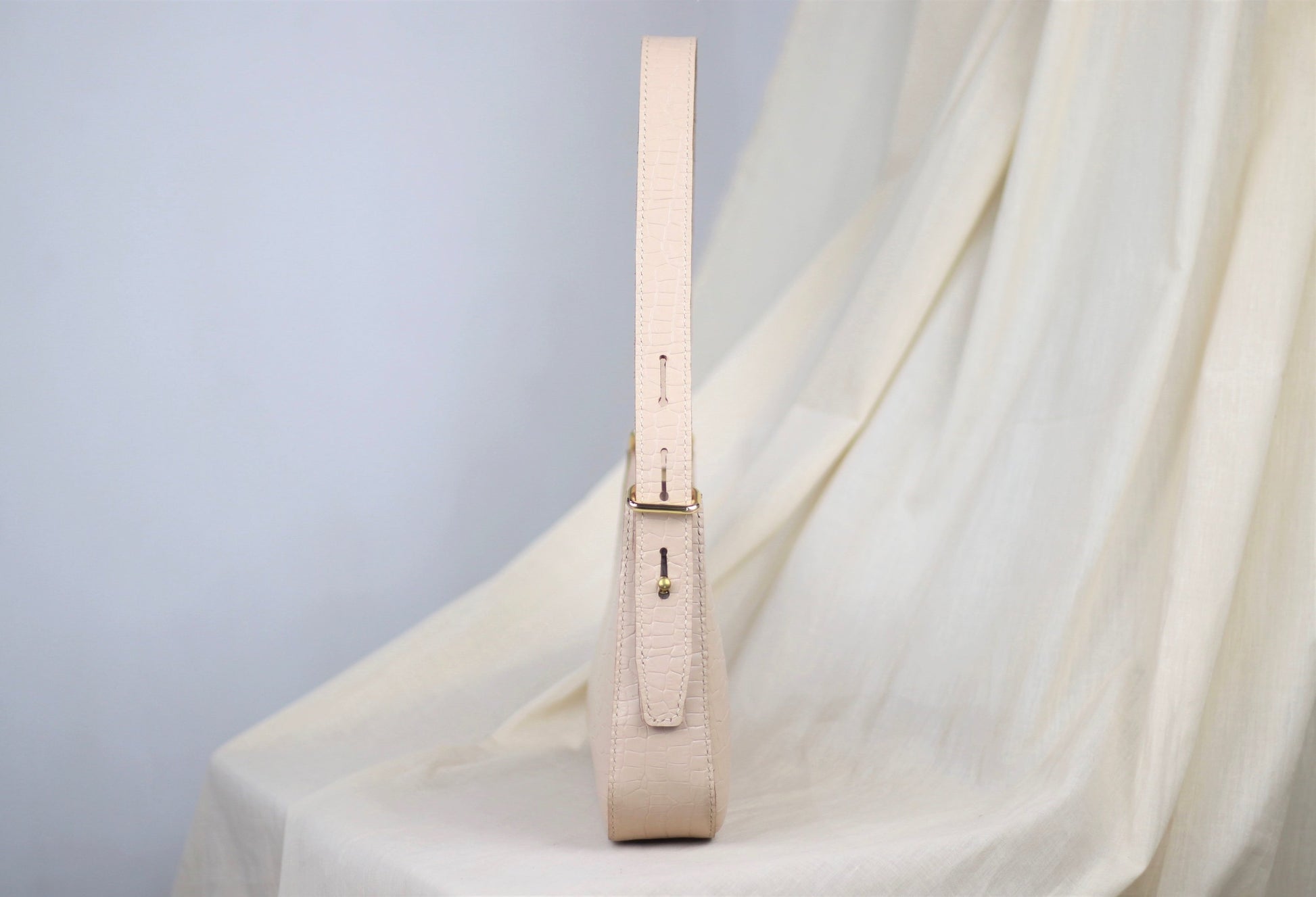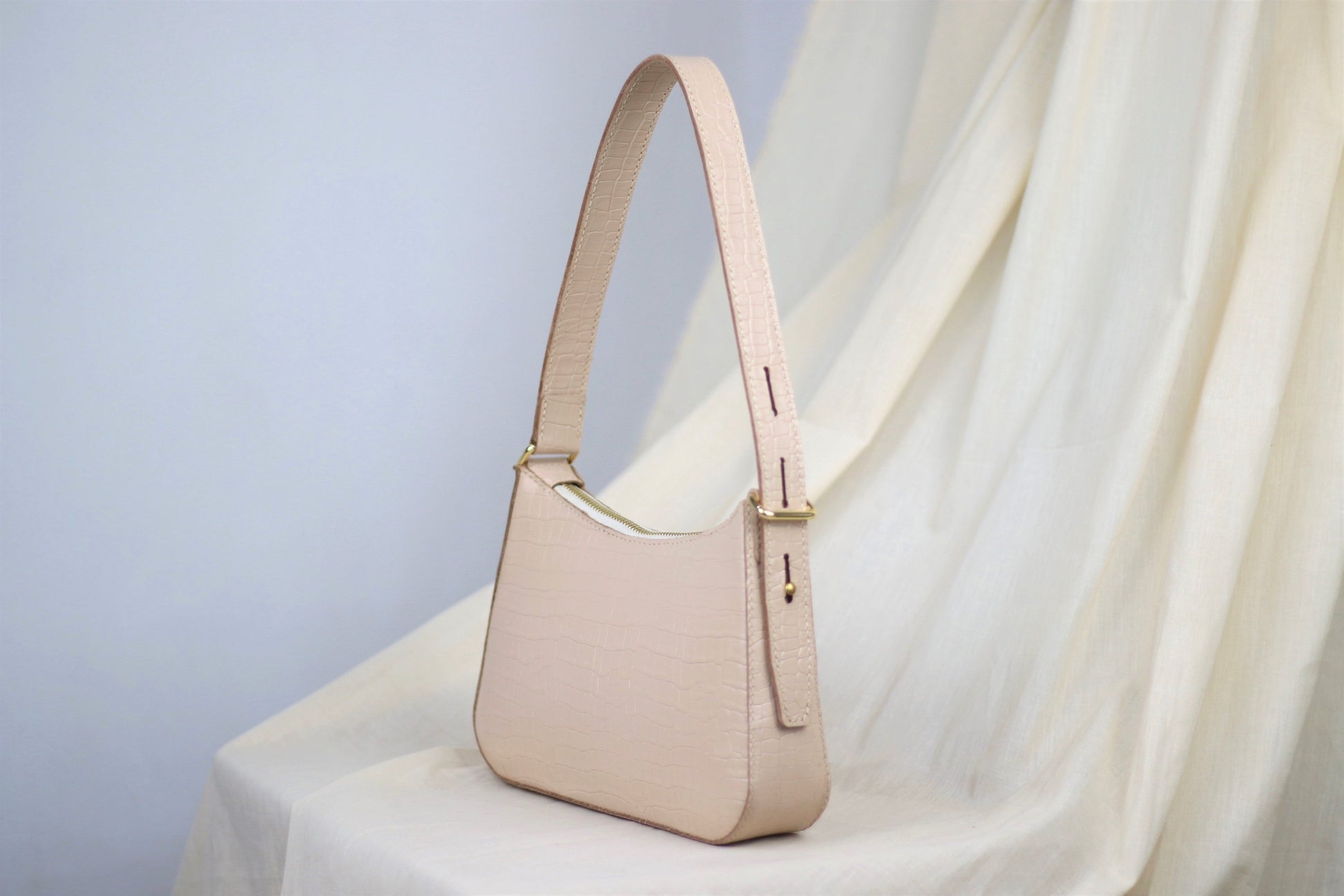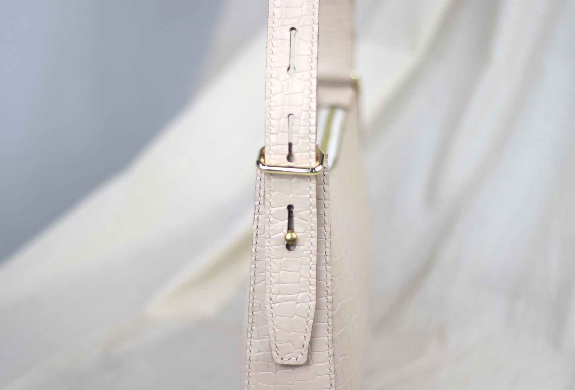 The Moon Shadow Crocodile shoulder bag is a stylish staple piece we all love that works for any occasion. Let this lilac beige shoulder bag be the perfect finishing touch to your new daily ensembles. Its interior fits all your essentials, while the durable zipper closure holds them secure. This shoulder bag is the ideal combination of elegance and versatility, and it will quickly become your go-to accessory.