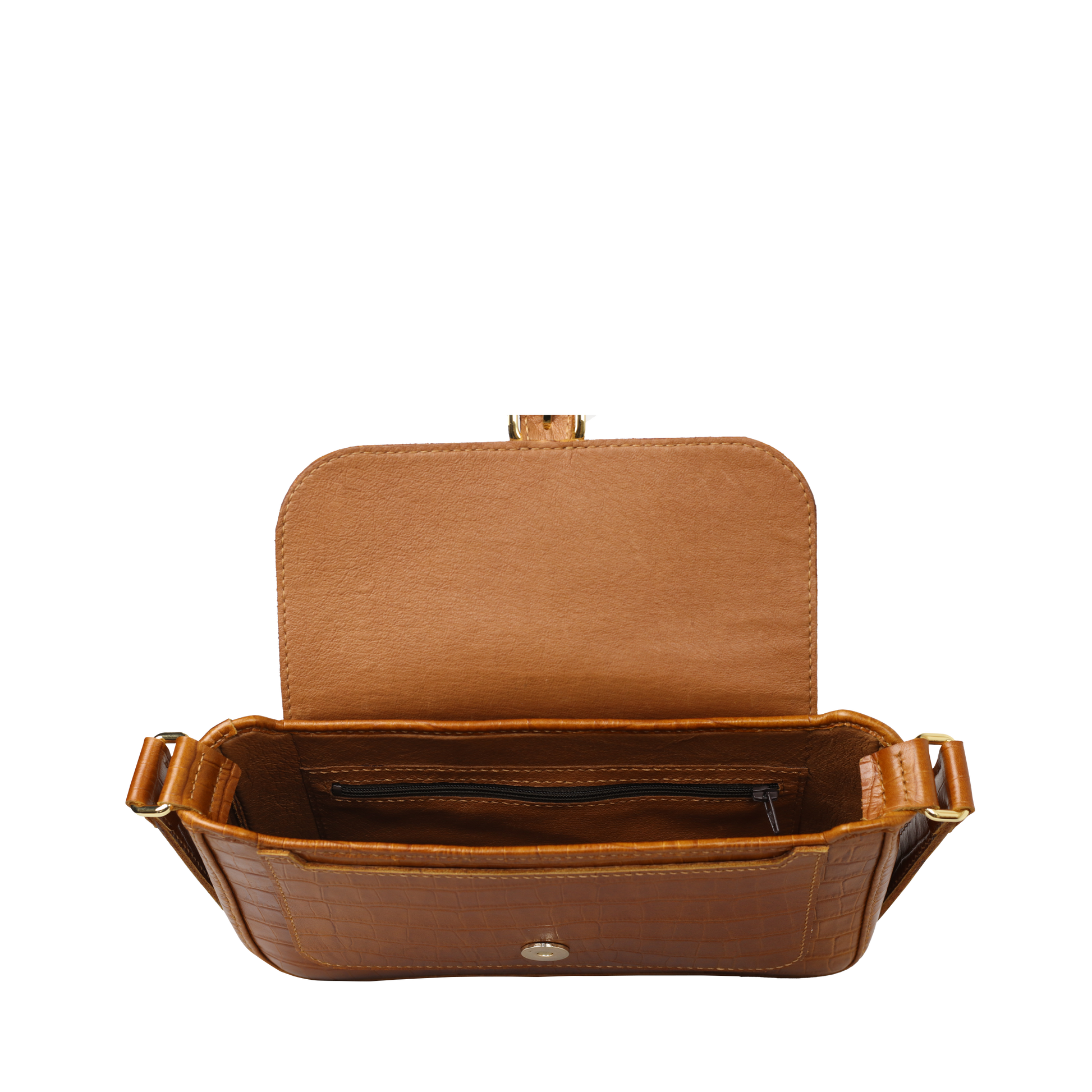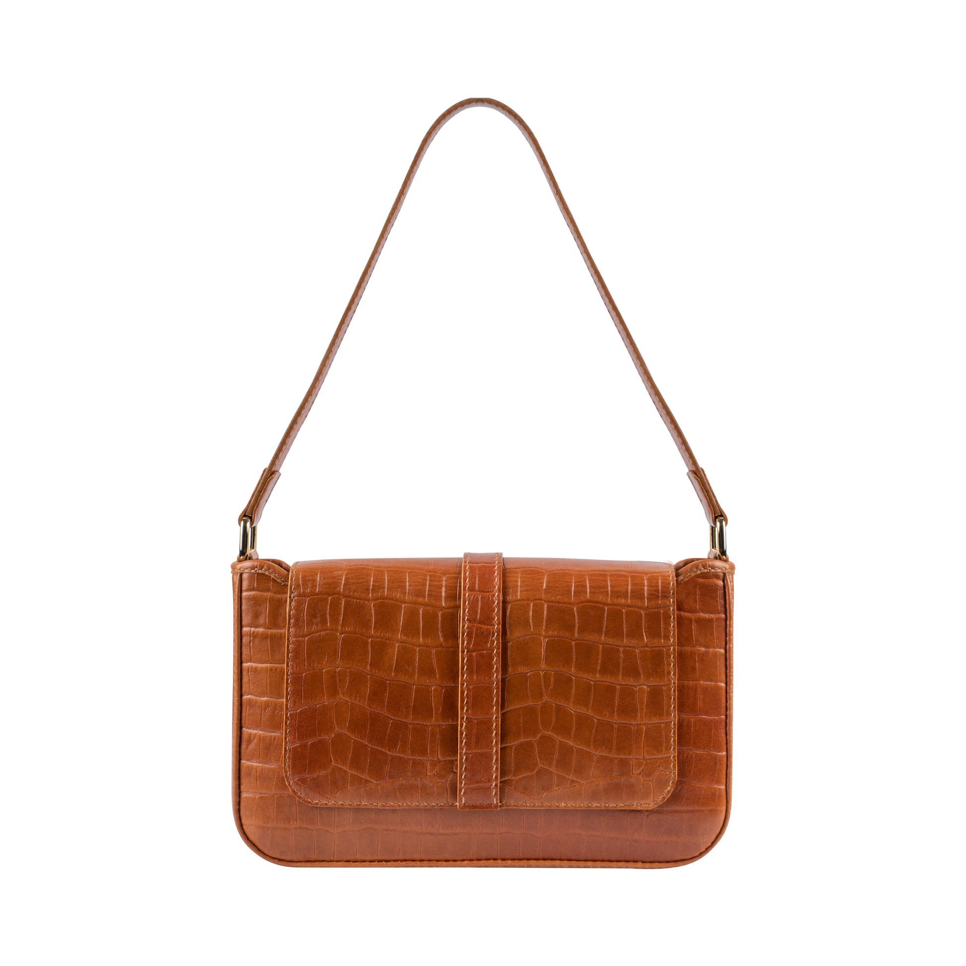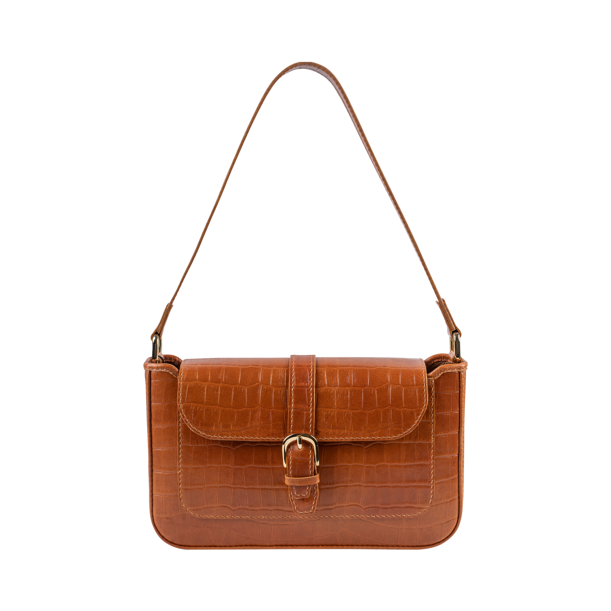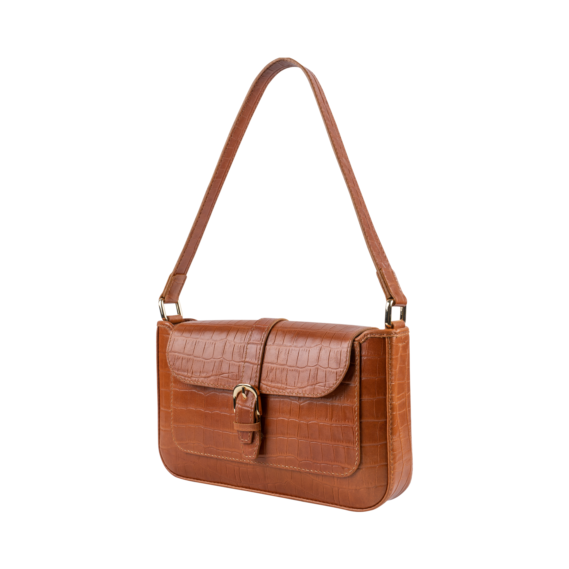 Rendered in a timeless caramel brown shade, this Fancy Shoulder Bag can match seamlessly with any outfit you have in mind. Plus, the sleek gold-tone accents add a luxurious touch to this piece. A compact design gives just the right amount of room for your necessities, with magnet closure for added security.