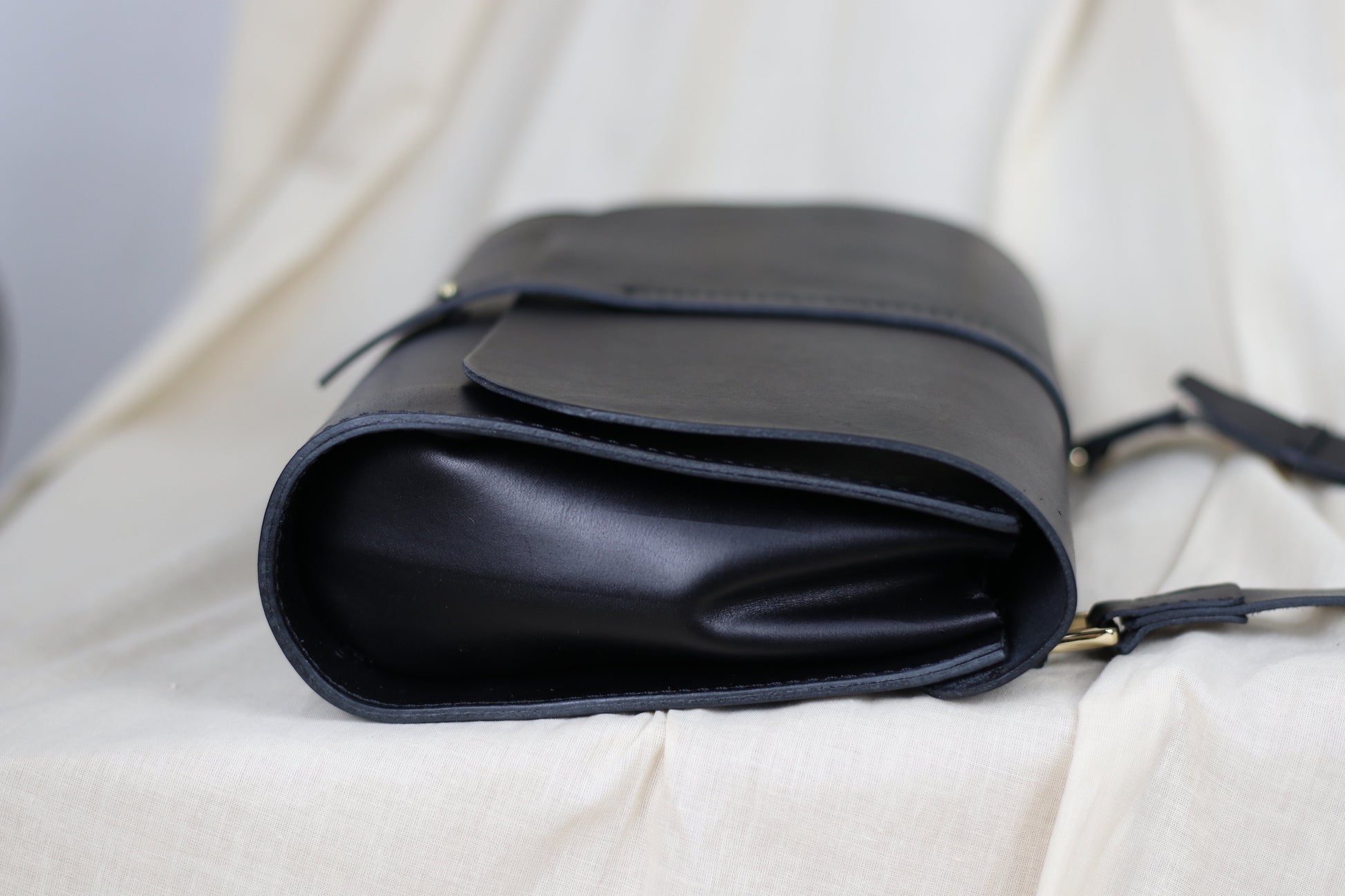 The Veg tanned Crossbody bag is a must-have for people who like minimalism. This crossbody bag is made from vegetable-tanned leather, an environmentally friendly leather with a pleasant herbal scent, and comes in classic black. The top spot for a simple design with a roomy space, ideal for storing your daily necessities.